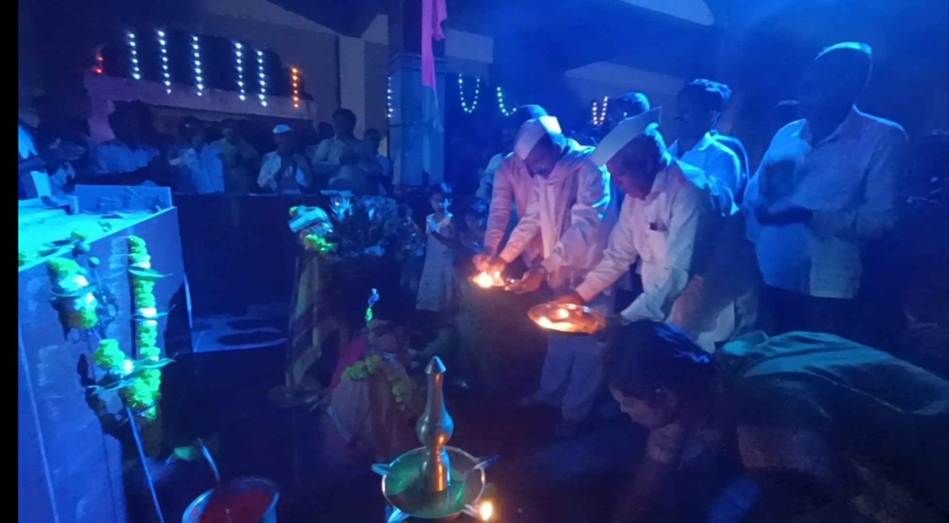 आरती घेण्यात आली त्यानंतर आकर्षक फटाक्यांची आतिशबाजी चा कार्यक्रम झाला
