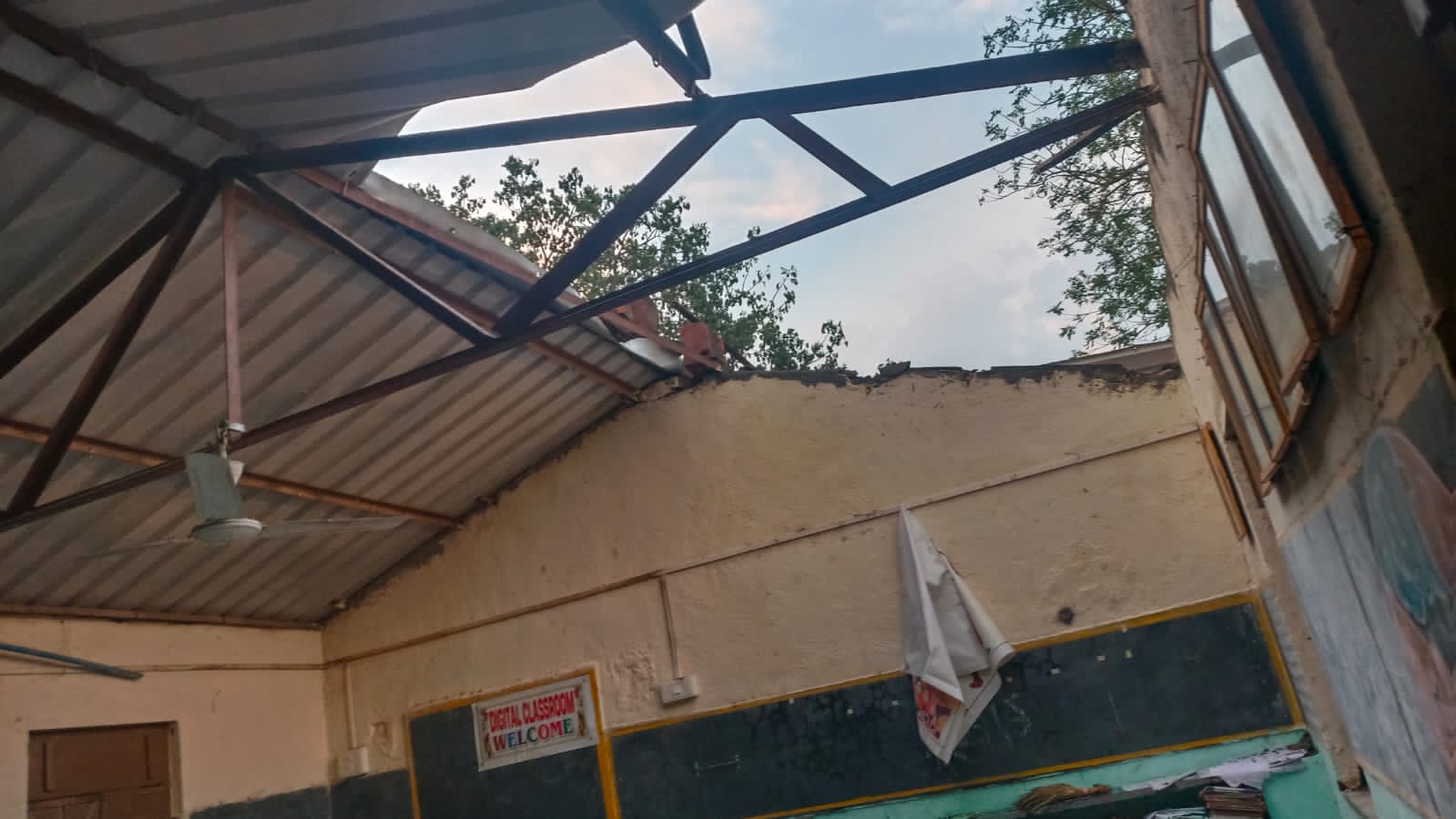 वादळी वाऱ्याने अंभोरेतील शाळा खोल्यांचे पत्रे उडाले!