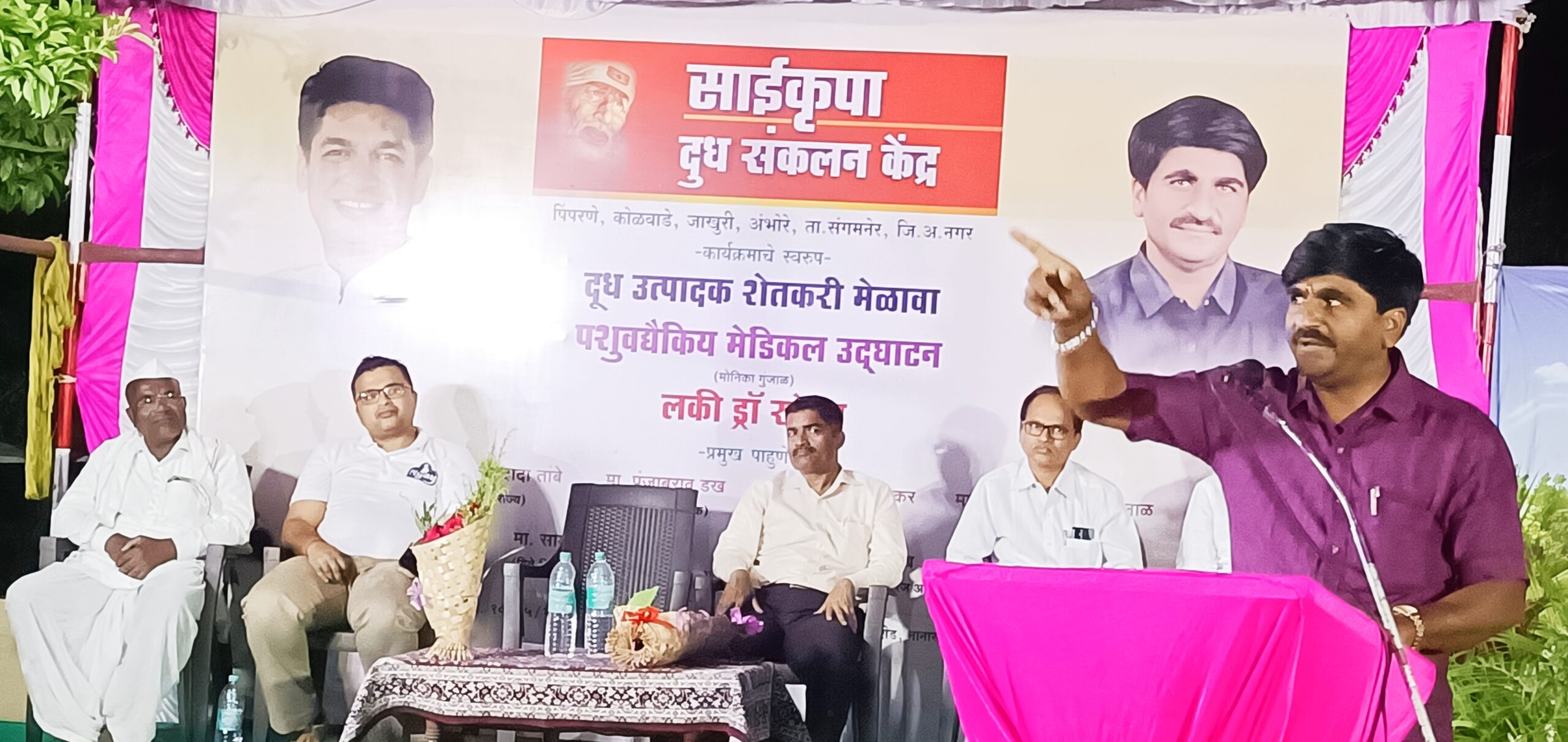 शेतकऱ्यांसाठी संगमनेर तालुक्यातील पिंपरणे नागापूरवाडी येथे साईकृपा दूध संकलन केंद्राच्या वतीने बुधवार दि १० रोजी शेतकरी मेळाव्याचे आयोजन केले होते यावेळी प्रमुख पाहुणे म्हणून हवामान तज्ञ पंजाबराव डख होते यांनी हवामानाविषयी आपले अंदाज सांगितले यावेळी साईकृपा दूध संकलनाचे संस्थापक अध्यक्ष प्रज्वल गुंजाळ यांनी शेतकऱ्यांसाठी ना नफा ना तोटा या तत्त्वावर पशुवैद्यकीय मेडिकल सुरू केले या मेडिकल चे उद्घाटन प्रमुख पाहुणे पंजाबराव डख यांच्या हस्ते झाले