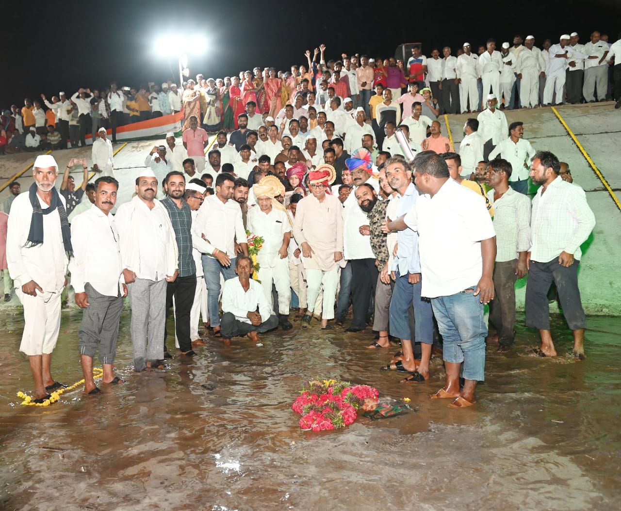 पिंपळगाव कोझीरा बोगद्यालगत तालुक्यातील कार्यकर्त्यांच्या वतीने कालव्यांच्या दुतर्फा मोठी विद्युत रोषणाई करण्यात आली होती . यावेळी लोकनेते आमदार बाळासाहेब थोरात यांची पारंपारिक वाद्यात ग्रामस्थांनी मोठी मिरवणूक काढली. आकर्षक आतिषबाजी, ढोल ताशांचा गजर, पारंपारिक वाद्य, सुवासिनीचे औक्षण ,, यांसह तरुण नागरिक व आबालवृद्धांसह सर्वांचा जल्लोष हे या आनंददायी सोहळ्याची वैशिष्ट्य ठरले. अत्यंत संस्मरणीय ठरलेल्या या रम्य सायंकाळी आमदार थोरात यांच्या संकल्पनेतून कालव्याच्या किनारी कार्यकर्त्यांनी भजन व अभंग गाऊन वातावरण मंत्रमुग्ध केले .