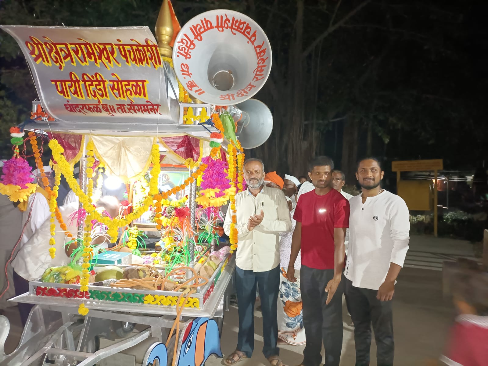 दिंडीचा रथ अल्या नंतर पांडुरंग परमात्म्याची आरती घेण्यात आली नंतर महाप्रसादाचा कार्यक्रम होऊन रात्री विविध धार्मिक कार्यक्रम झाले यावेळी येवले महाराज यांचे सूश्राव्य प्रवचन झाले