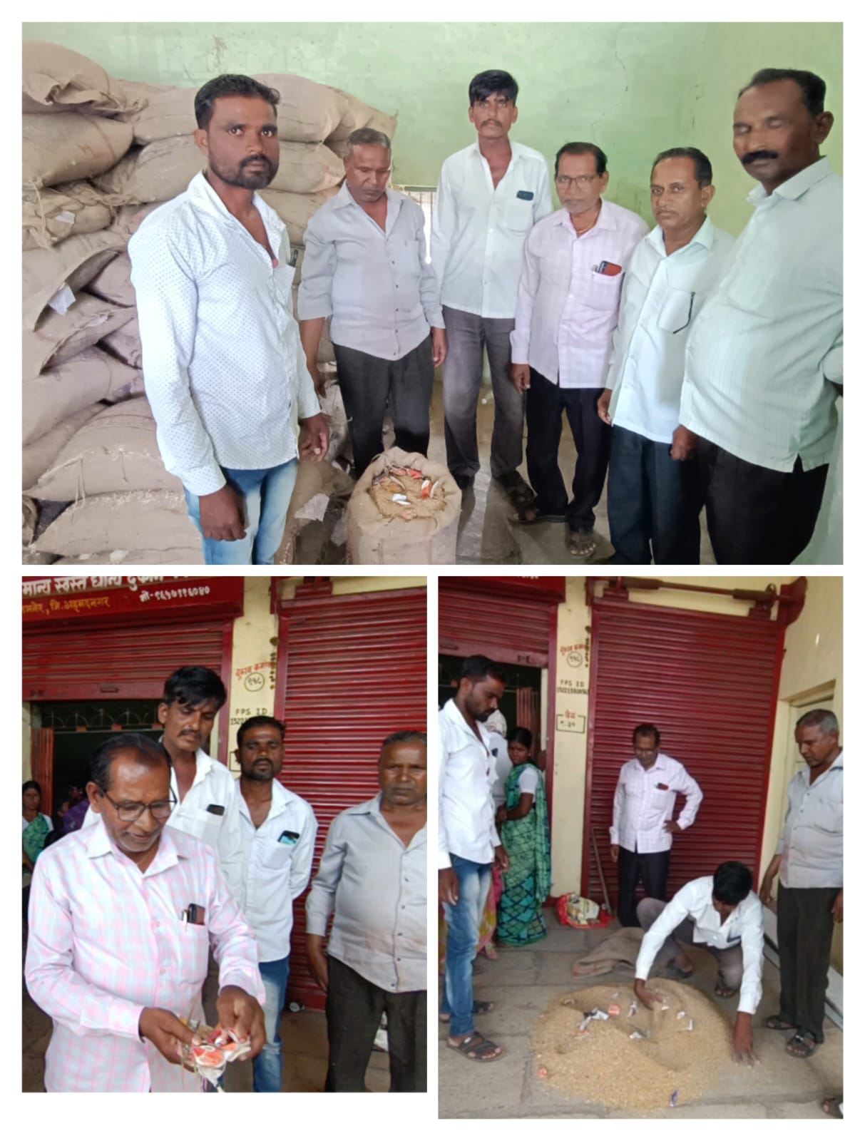 असता दुकानदार भाऊसाहेब ठोंबरे यांनी त्या गोण्या बाजूला ठेवून दुसऱ्या गोण्यांमधील धान्य वाटप सुरू केली