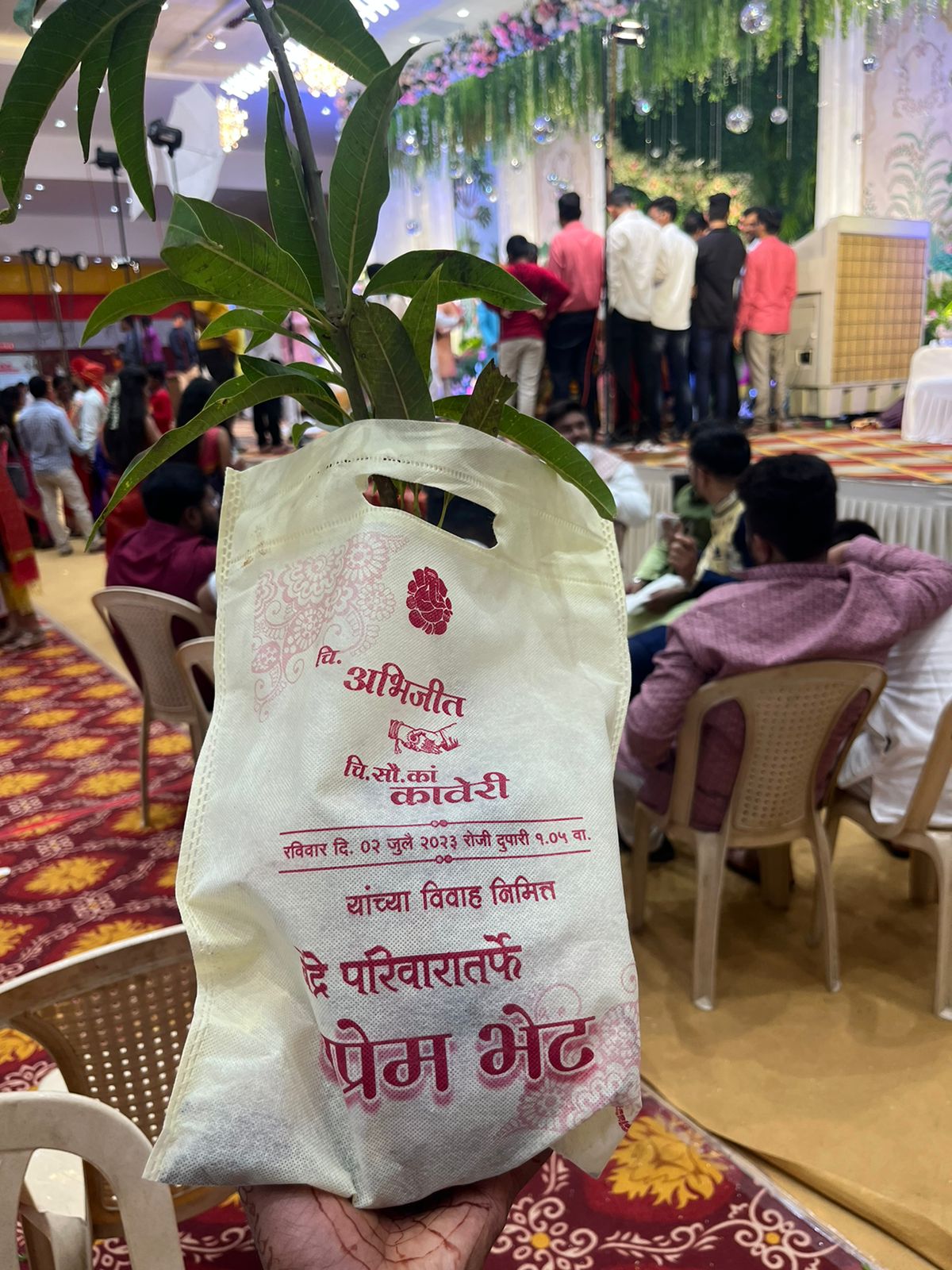 विवाह समताच सर्वांनी अंबा रोपे घेण्यासाठी मोठी झुंबड केली. होती मात्र प्रत्येकाने या अनोख्या पद्धतीचे कौतुकही केले आहे.