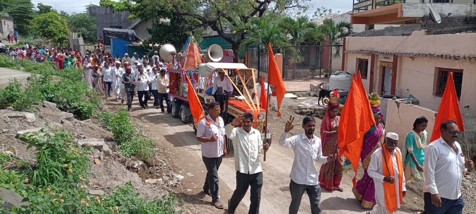 भगव्या पताका हातात घेऊन टाळ मृदंगाच्या गजरात हरिनाम घेत ग्रामप्रदक्षिणा घेत हा पायी दिंडी सोहळा सुभाष रामराव ठोंबरे यांच्या वस्ती वर पोहोचला या ठिकाणी वारकऱ्यांना फराळाची व्यवस्था केली होती तर संजय भादेकर यांनी फळे अन्नदान केले