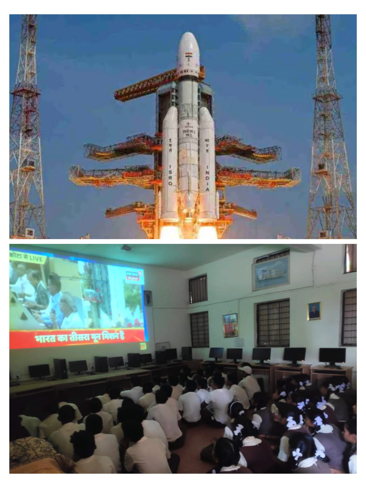 गगनगिरी महाराज विद्यालयाच्या विद्यार्थ्यांनी घेतला लाईव्ह चंद्रयान 3 प्रक्षेपणाचा आनंद.
