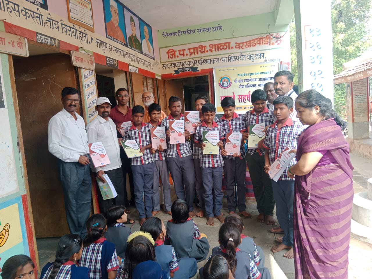 “संत गाडगेबाबा भानुप्रभाकार सेवा प्रतिष्ठान” संगमनेर ,तर्फे वरखडवाडी येथील जिल्हा परिषदेच्या इयत्ता आठवीच्या विद्यार्थ्यांना शिष्यवृत्ती परीक्षा मार्गदर्शक संच व लेखन साहित्य नुकतेच वाटप करण्यात आले.