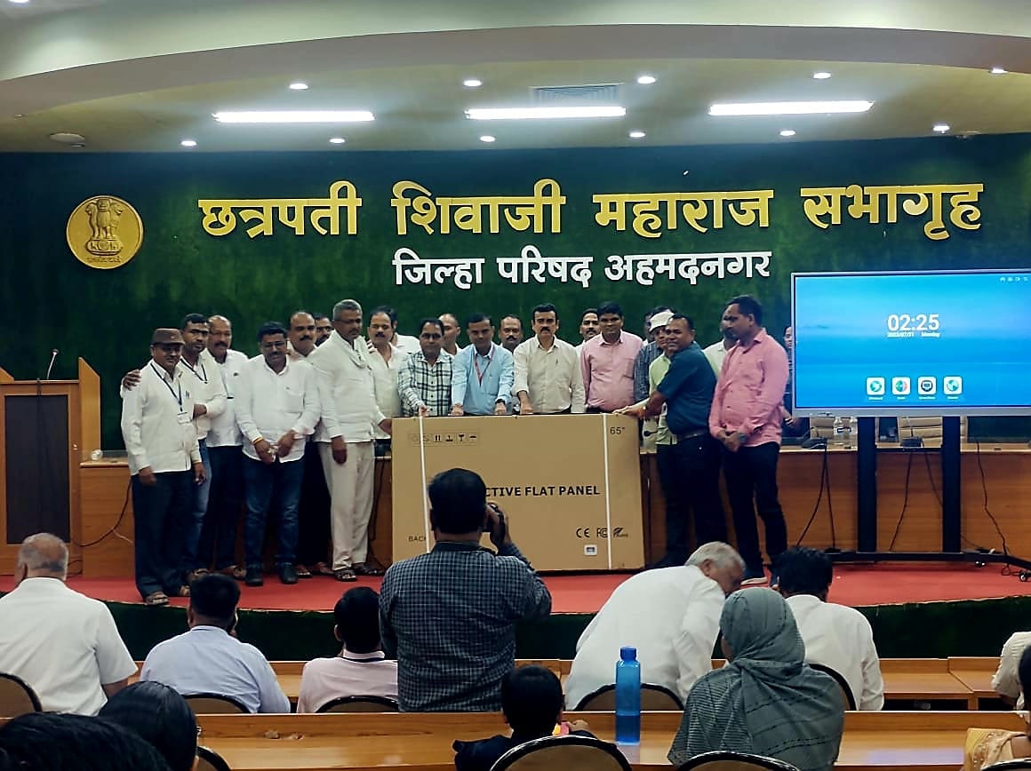 अहमदनगर प्राथमिक शिक्षक बँकेच्या वतीने पिंपरणे केंद्र शाळेला इंटरएक्टिव बोर्ड भेट