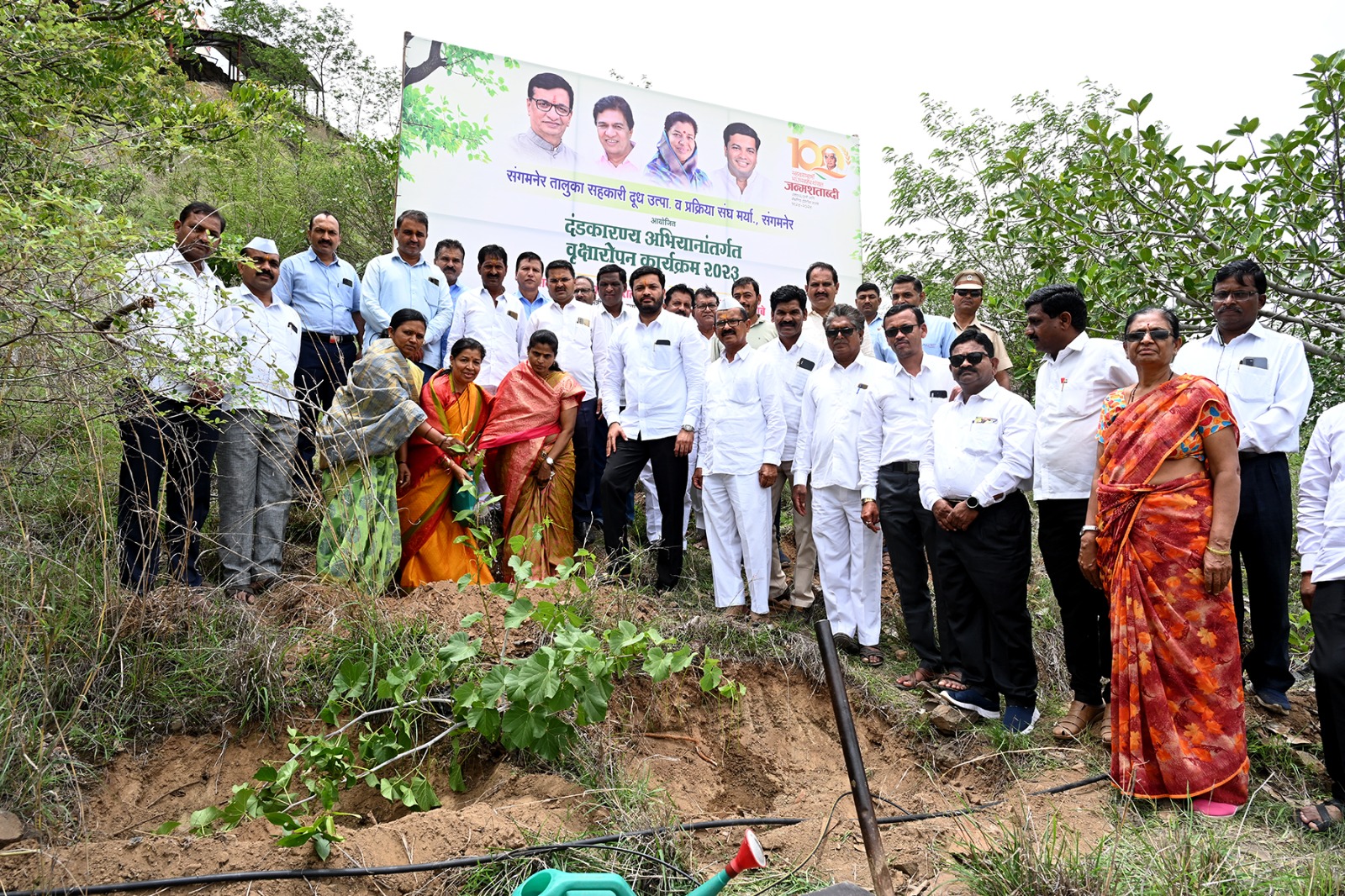 हिवरगाव पावसा येथील देवगड डोंगर परिसरात संगमनेर तालूका सहकारी दूध उत्पादक व प्रक्रीया संघाचे वतीने दंडकारण्य अभियानांतर्गत लोकनेते आमदार बाळासाहेब थोरात यांच्या मार्गदर्शनाखाली विविध वृक्षांचे रोपण करण्यात आले. यावेळी प्रकल्प प्रमुख सौ.दुर्गाताई तांबे, दुध संघाचे चेअरमन रणजितसिंह देशमुख, व्हा.चेअरमन राजेंद्र चकोर, संचालक विलासराव वर्पे, भास्करराव सिनारे, विलासराव कवडे, संतोष मांडेकर, विक्रमराजे थोरात, रविंद्र रोहम, बबनराव कुराडे, डॉ.प्रमोद पावसे, सौ.प्रतिभाताई जोधंळे, सौ.सुषमाताई भालेराव,कार्यकारी संचालक डॉ.सुजित खिलारी ,गणपतराव शिंदे, देवगड देवस्थानचे अध्यक्ष उत्तमराव जाधव,उपाध्यक्ष यादवराव पावसे, गणपत हासे, गोरक्षनाथ पावसे, बबन शिंदे, मोठ्याभाऊ बढे, चंद्रशेखर गडाख, पांडूरंग गडाख,संदिप पावसे, अशोक पावसे, अभियानाचे सावंत, फापाळे आदीसह ग्रामस्थ मोठ्या संख्येने उपस्थित होते.
