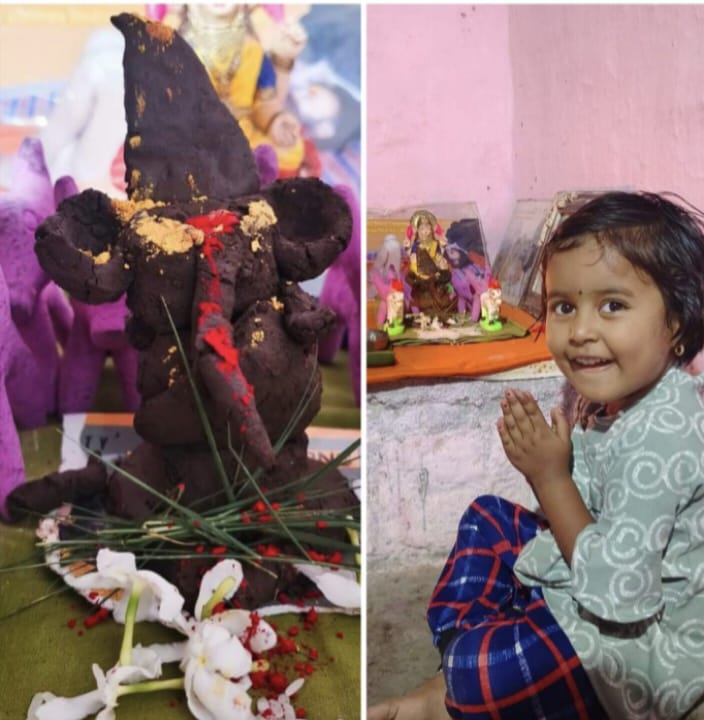 चिमुकलीने केली पर्यावरणपूरक श्रींच्या मूर्तीची प्राणप्रतिष्ठा.!!