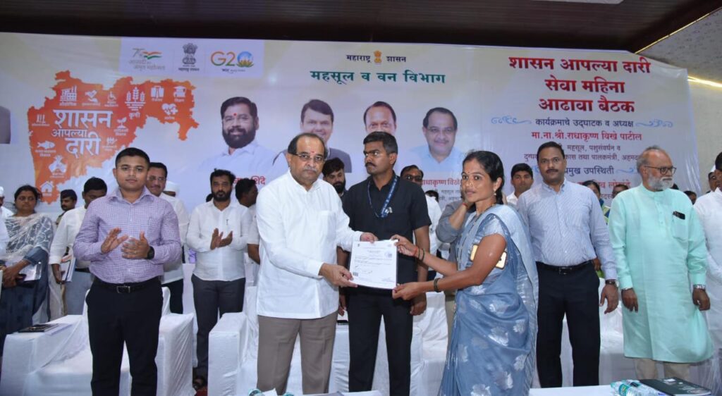 ‘शासन आपल्या दारी’ अभियानात संगमनेर तालुक्यातील एक हजार लाभार्थ्यांना योजनांचा लाभ देण्यात येत आहे. असे नमूद करून महसूलमंत्री श्री. विखे पाटील म्हणाले, महिलांना देशपातळीवर आरक्षण देऊन देशाच्या विकासाच्या प्रवाहात आणण्याचे काम पंतप्रधान नरेंद्र मोदी यांनी केले. शासन आपल्या दारी योजनेत जिल्ह्यात जवळपास २४ लाख लाभार्थ्यांना लाभ देण्यात आला आहे. एक रूपयात पीक विमा सारखी सर्वसामान्य शेतकऱ्यांसाठी योजना आणली. यामुळे जिल्ह्यात ११ लाख ८० हजार शेतकऱ्यांनी पीक विमा काढला. राज्यात ‘शासन आपल्या दारी’ योजनेत दीड कोटी लाभार्थ्यांना लाभ मिळाला आहे.
