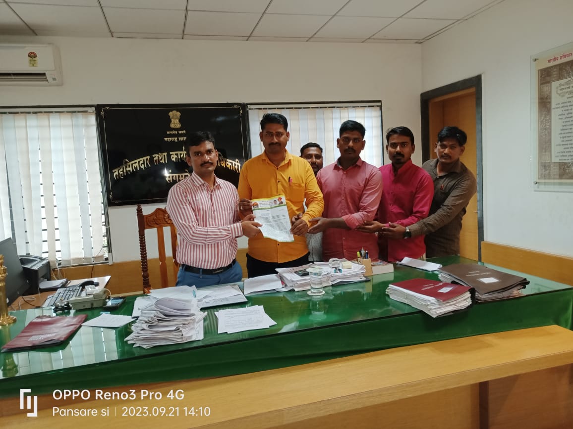 श्री.प्रशांत राऊत यांच्या वतीने राज्याचे विद्यमान महसूल मंत्री, ना.राधाकृष्ण विखे पा.पशुसंवर्धन दुग्धविकास मंत्री तथा अहमदनगर पालकमंत्री महाराष्ट्र राज्य व संगमनेरचे तहसीलदार श्री धीरज मांजरे साहेब यांना देण्यात आले. मंत्री महोदयांनी या निवेदनावर तात्काळ कार्यवाही करू असे आश्वासन दिले आहे.