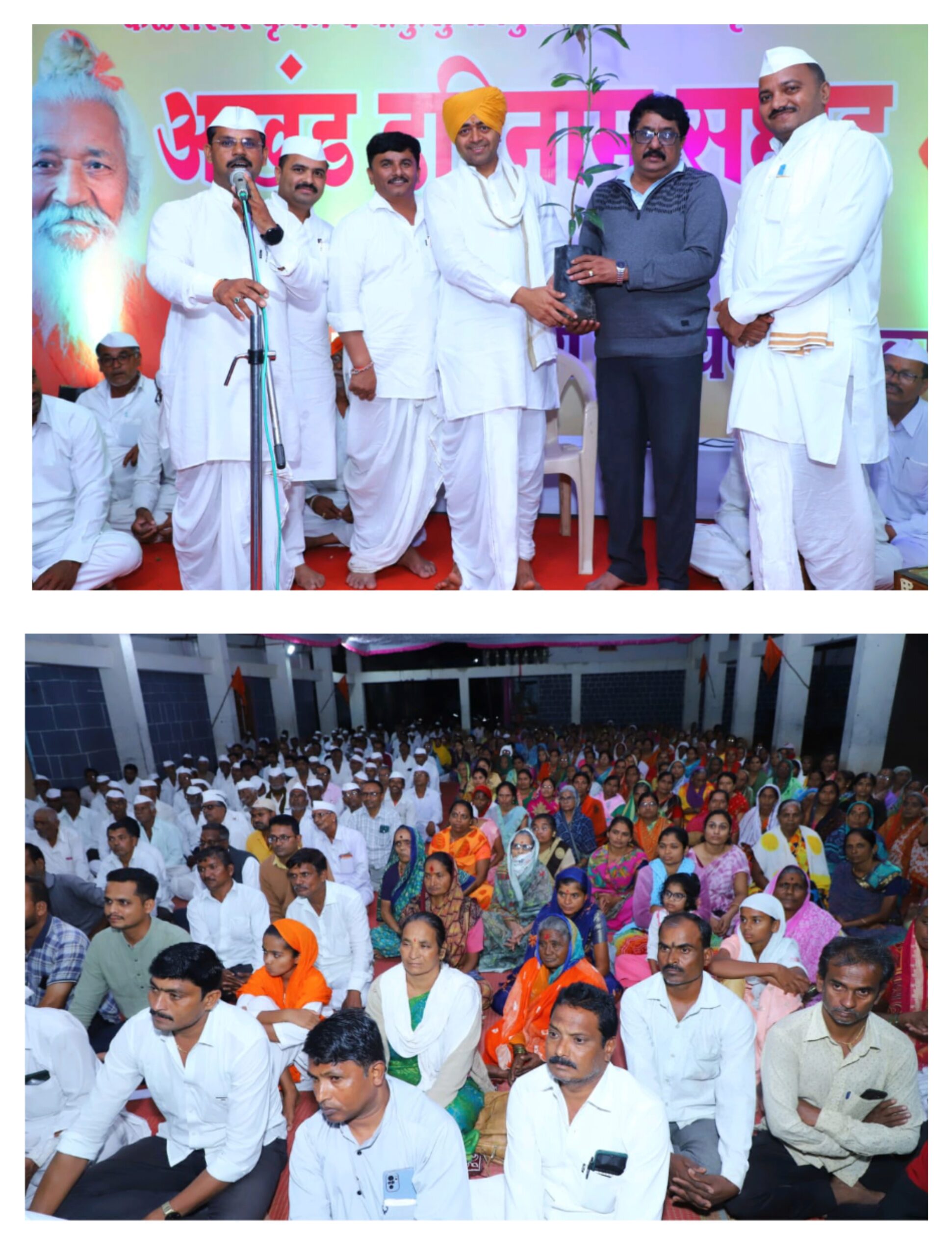 यावेळी अगस्ती साखर कारखाना चे संचालक कैलासराव वाकचौरे व कृषी उत्पन्न बाजार समिती संचालक श्री. ईश्वर वाकचौरे यांचा संतपंगत दिले बद्दल सरपंच राजेंद्र गवांदे यांच्या वतीने आम्रवृक्ष देऊन सन्मान करण्यात आला.
