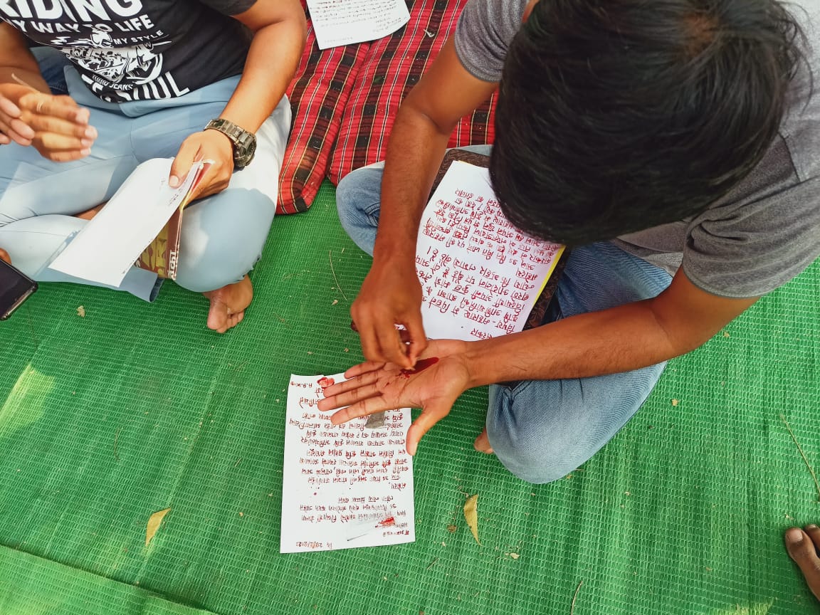 म्हणूनच आज आंदोलनकर्त्यांनी स्वतःच्या रक्ताने आपल्या मागन्यांविषयीचे पत्र मा. राष्ट्रपती , मा. पंतप्रधान , मा. राज्यपाल , मा. मुख्यमंत्री आणि मा. उपमुख्यमंत्री यांना लिहिले ,
