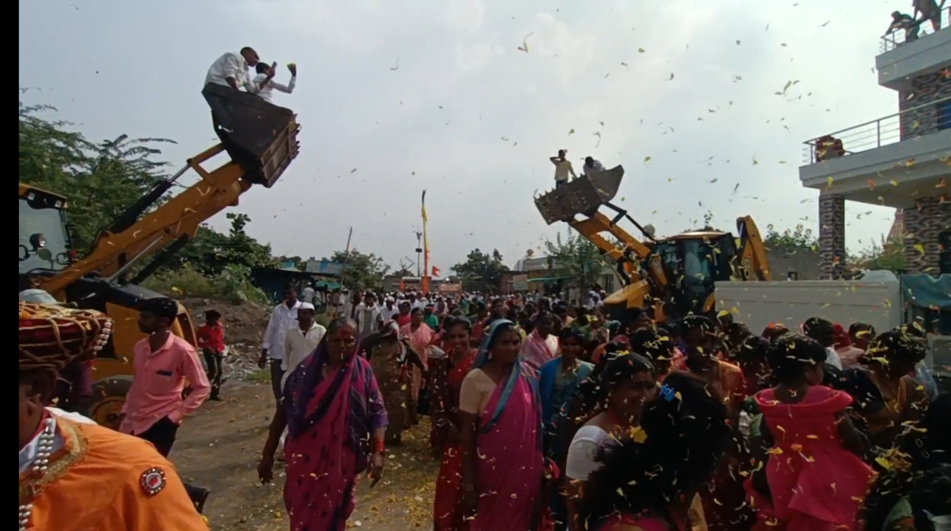 मिरवणूक गावात आली असता दत्तगिरी महाराजांनी ग्रामदैवत गणपती,हनुमान, विठ्ठल रुक्माई, आणि ग्रामदैवत बिरोबा महाराज यांचे आशीर्वाद घेतले.मिरवणूक गावात आली असता महंत दत्तगिरी महाराज महाराजांवर व मिरवणुकीतील भाविकांवर ठिकठिकाणी जेसीबी वरून फुलांची उधळण ग्रामस्थांनी केली