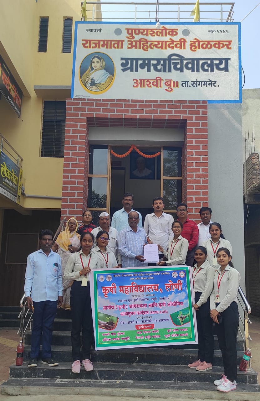 लोकनेते पद्मभूषण डॉ.बाळासाहेब विखे पाटील प्रवरा ग्रामीण शिक्षण संस्थेचे व महात्मा फुले कृषी विद्यापीठ संलग्नित कृषी महाविद्यालय लोणी येथे हे विद्यार्थीनी शिक्षण घेत आहेत. संस्थेच्या कृषी शिक्षण संचालिका व कृषी महाविद्यालय लोणी च्या प्राचार्या डॉ. शुभांगी साळोखे, कार्यक्रम समन्वयक डॉ.प्रा.रमेश जाधव,कार्यक्रम अधिकारी डॉ.प्रा.विक्रम अनाप आणि प्रा. डॉ. दिपाली तांबे यांच्या मार्गदर्शनाखाली कृषिकन्या सुपेकर गायत्री,वळकुंदे अंकिता,लोकरे श्रद्धा,रायकर तृप्ती,गाडेकर वैष्णवी,साळवी स्तुती हे आश्वी बु येथील शेतकऱ्यांचे अनुभव जाणून घेत त्यांना मार्गदर्शन करत आहेत.