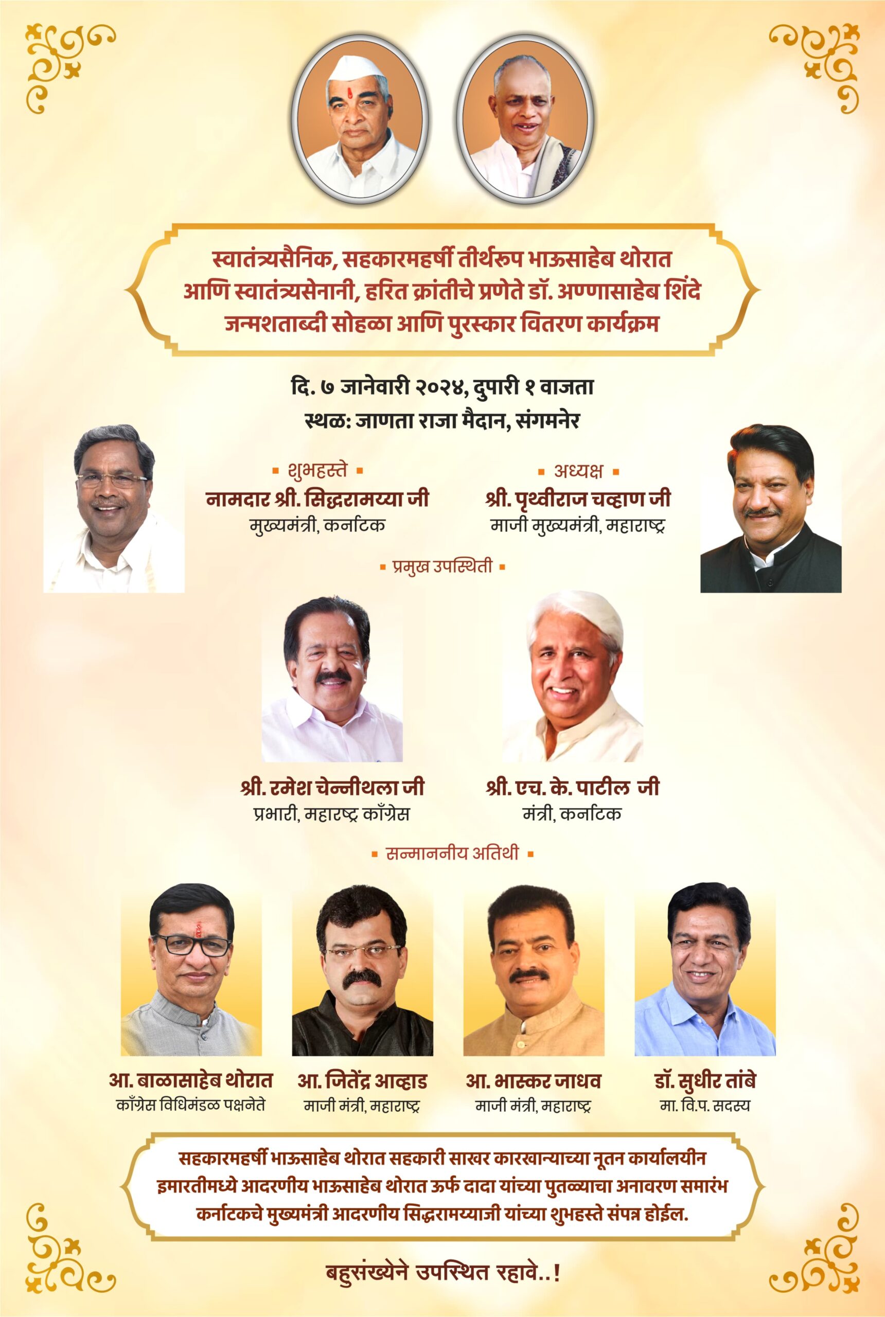 सहकारमहर्षी भाऊसाहेब थोरात यांच्या जन्मशताब्दी निमित्त मानवंदना