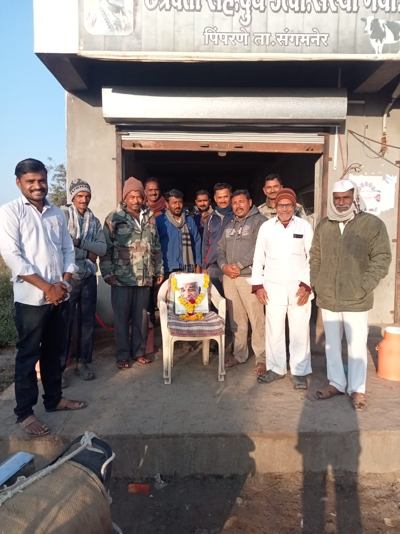छत्रपती दूध संस्थेच्या वतीने स्वर्गीय भाऊसाहेब थोरात यांची जयंती साजरीसंगमनेर / लोकवेध live न्यूजसंगमनेर तालुक्यातील पिंपरणे येथे छत्रपती दूध संस्थेच्या वतीने सहकार महर्षी आदरनीय दादा स्व भाउसाहेब संतुजी थाेरात यांची जयंती उत्साहात साजरी करण्यात आली त्यावेळी सहकार महर्षी स्वर्गीय भाऊसाहेब थोरात यांच्या प्रतिमेला पुष्पहार घालूनद्विपप्रज्वलन व प्रतिमापुजन करूण आदरणीय स्वर्गीय सहकार महर्षी भाऊसाहेब थोरात (दादा) यांना अभिवादन करण्यात आलेयावेळी कार्यक्रमासाठी प्रमुख पाहुणे म्हणून संस्थेचे चेअरमन मारुती ठोंबरे व्हा चेअरमन शिवराम वाकचौरे तसेच ज्येष्ठ मार्गदर्शक दिनकर वाकचौरे सरपंच नारायण मरभळ शिवाजी राहिंज सामाजिक कार्यकर्ते, राहुल निकम किशोर जोर्वेकर, संतोष वाकचौर, रावसाहेब ठोंबरे,कुंडलिक ठोंबरे, मच्छिंद्र काळे, किरण देशमुख अरुण राहिंज प्रदिप रक्टे, सनी रहिज,संजय ठोंबरे, प्रल्हाद ठोंबरे, अनिल निकम, सोपान निकम आदी उपस्थित होते