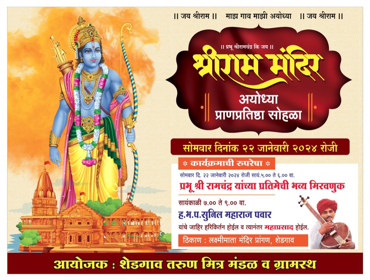 संध्याकाळी ५वाजता श्रीराम प्रतिमेची भव्य दिव्य व आकर्षक मिरवणुक काढण्यात येईल