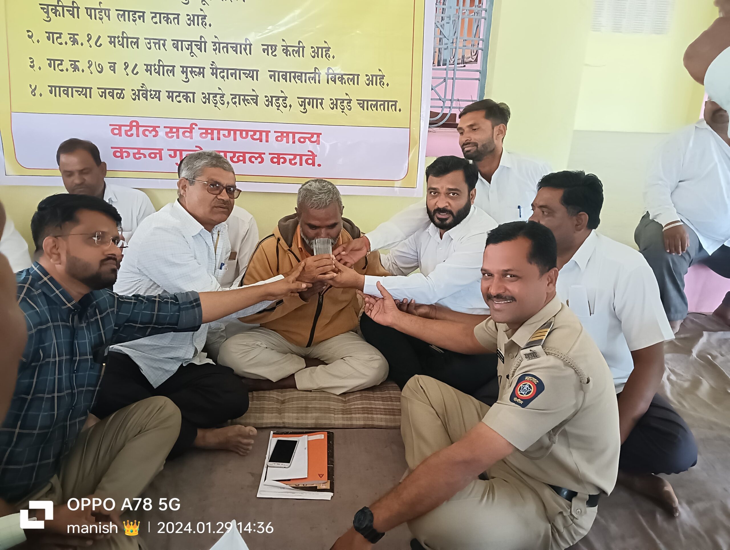 जल जीवन मधील निकृष्ट कामाचे पाहणी करून त्यामधील त्रुटी, तसेच पाण्याचा स्त्रोत वाढविणेसाठी काय करता येईल याबाबत चर्चा झाली. उद्या सकाळी ११ वाजता तलाठी मॅडम गावातील अवैध उत्खनन झालेल्या ठिकाणचा पंचनामा करणार आहे त्यावेळेस उपोषणकर्ते लांडगे व ग्रामस्थ यांच्या समक्ष करणार आहे. पोलिसांनी गावातील अवैध धंदेवर कारवाई केल्यामुळे राजाराम लांडगे यांनी समाधान व्यक्त केले.