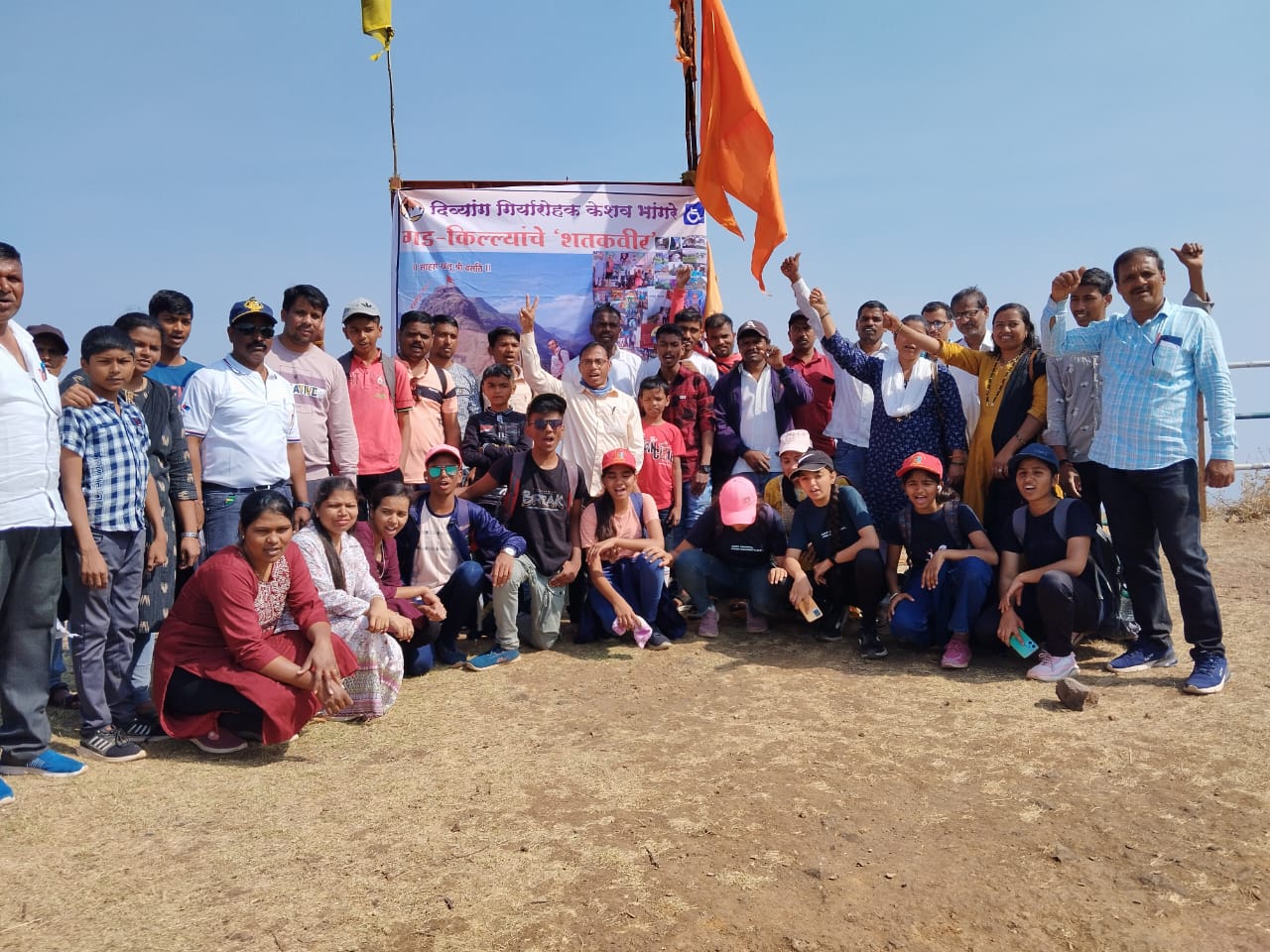 दिव्यांग केशव भांगरेंची सेंच्युरी.पाबर गडावर स्वप्नपूर्ती; गड सर केल्यानंतर सवंगड्यांसोबत जल्लोष.