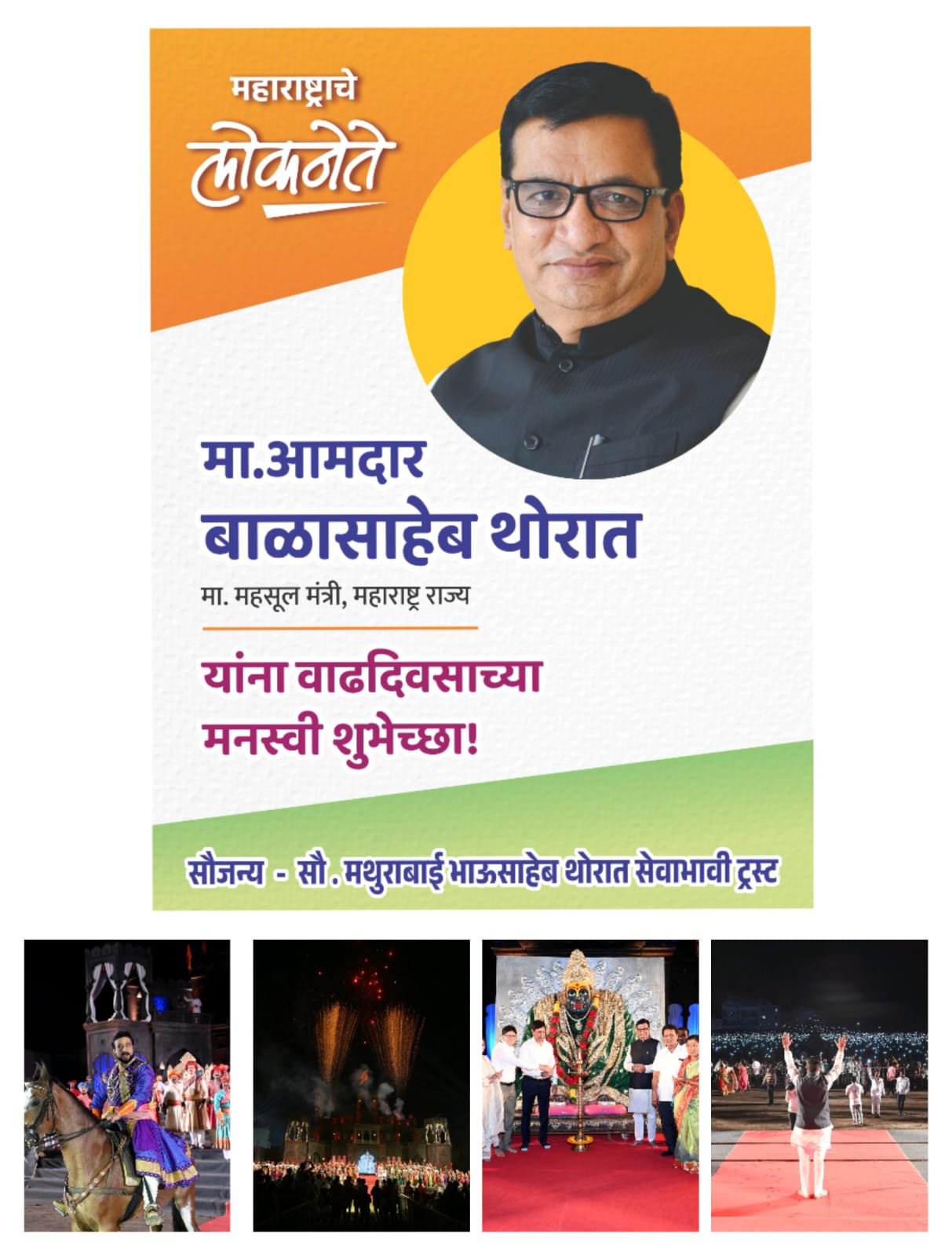 जाणता राजा मैदानावर आमदार बाळासाहेब थोरात यांच्या वाढदिवसानिमित्त शिवपुत्र संभाजी या महानाट्याच्या तिसऱ्या दिवशी सुमारे 60000 नागरिकांची उपस्थिती होती यावेळी काँग्रेस विधिमंडळ पक्षाचे नेते आमदार बाळासाहेब थोरात मा. आमदार डॉ सुधीर तांबे, नगराध्यक्ष सौ दुर्गाताई तांबे, उद्योगपती मनीष मालपाणी, गिरीश मालपाणी ,कॅन्सरतज्ञ डॉ. जयश्रीताई थोरात, रणजीत सिंह देशमुख आदींसह विविध मान्यवर व पदाधिकारी उपस्थित होते.