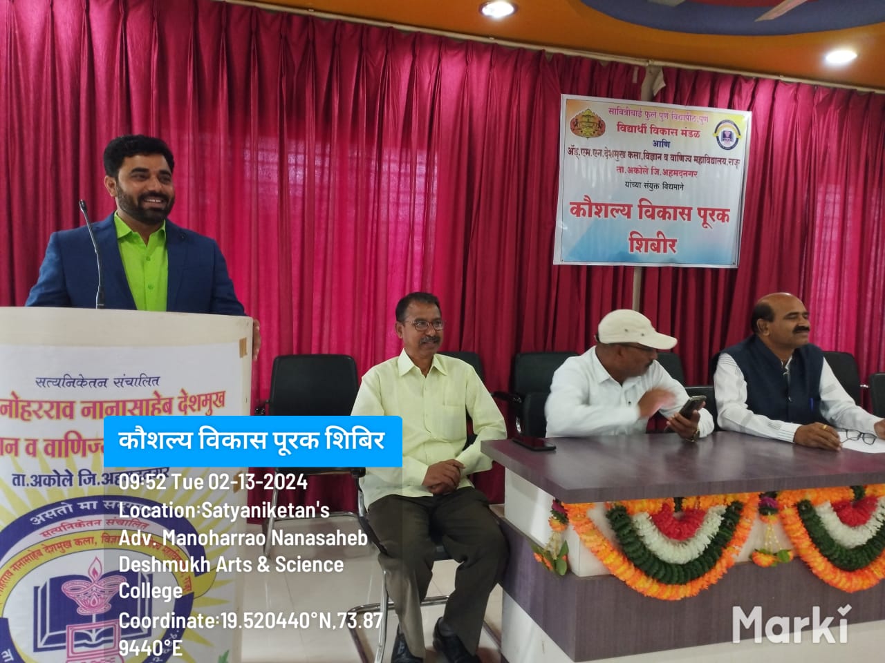 ॲग्रोव्हेट कंपनी लिमिटेड, संगमनेर चे उद्योगपती नितिन हासे यांनी केले. ते सावित्रीबाई फुले पुणे विद्यापीठ विद्यार्थी कल्याण मंडळ आणि ॲड.एम.एन.देशमुख महाविद्यालयातील विद्यार्थी कल्याण मंडळ यांचे संयुक्त विद्यमाने आयोजित ” कौशल्य विकास पूरक शिबिराच्या ” उद्घाटन प्रसंगी ” उद्योजक कसे बनावे “या विषयावर प्रमुख अतिथी म्हणून बोलत होते. कार्यक्रमाच्या अध्यक्षस्थानी महाविद्यालयाचे प्राचार्य प्रोफेसर डॉ.भाऊसाहेब देशमुख हे उपस्थित होते. आपल्या पुढील भाषणात उद्योजक असे म्हणाले की,” आदर्श उद्योजक होण्यासाठी संयम,कष्ट करण्याची प्रवृत्ती, अनुभव प्रामाणिकपणा, त्याग, आणि ध्येय प्राप्तीसाठी धडपड व संकटावर मात करण्याची तयारी या गोष्टींची आवश्यकता असते.व हे सर्व गुण ग्रामीण भागातील तरुणांमध्ये आहेत त्यामुळे त्यांनी उद्योजक बनून इतरांना रोजगार द्यावा “असे विचार त्यांनी यावेळी व्यक्त केले. कार्यक्रमाचे प्रास्ताविक डॉ.एल.बी.काकडे यांनी केले, व प्रमुख अतिथींचा परिचय प्राचार्य डॉ. भाऊसाहेब देशमुख यांनी करून दिला. या शिबिरात प्रगतशील शेतकरी बाळू घोडे यांचे “आधुनिक शेती ” भाग्यश्री बोराडे यांचे ” बचत गट आणि कुटीर उद्योग” तसेच डॉ. लहू काकडे यांचे ” पर्यटन उद्योग ” या विषयावर व्याख्याने संपन्न झाली. प्रमुख अतिथींचा सत्कार महाविद्यालयाच्या वतीने करण्यात आला या कार्यक्रमाचे सूत्रसंचलन विभागाचे समन्वयक डॉ. वाल्मीक गिते यांनी केले तर आभार प्रा.राजेंद्र कासार यांनी मानले. या शिबिरामध्ये १५० विद्यार्थी तसेच शिक्षक शिक्षकेतर कर्मचारी मोठ्या संख्येने सहभागी झाले होते.