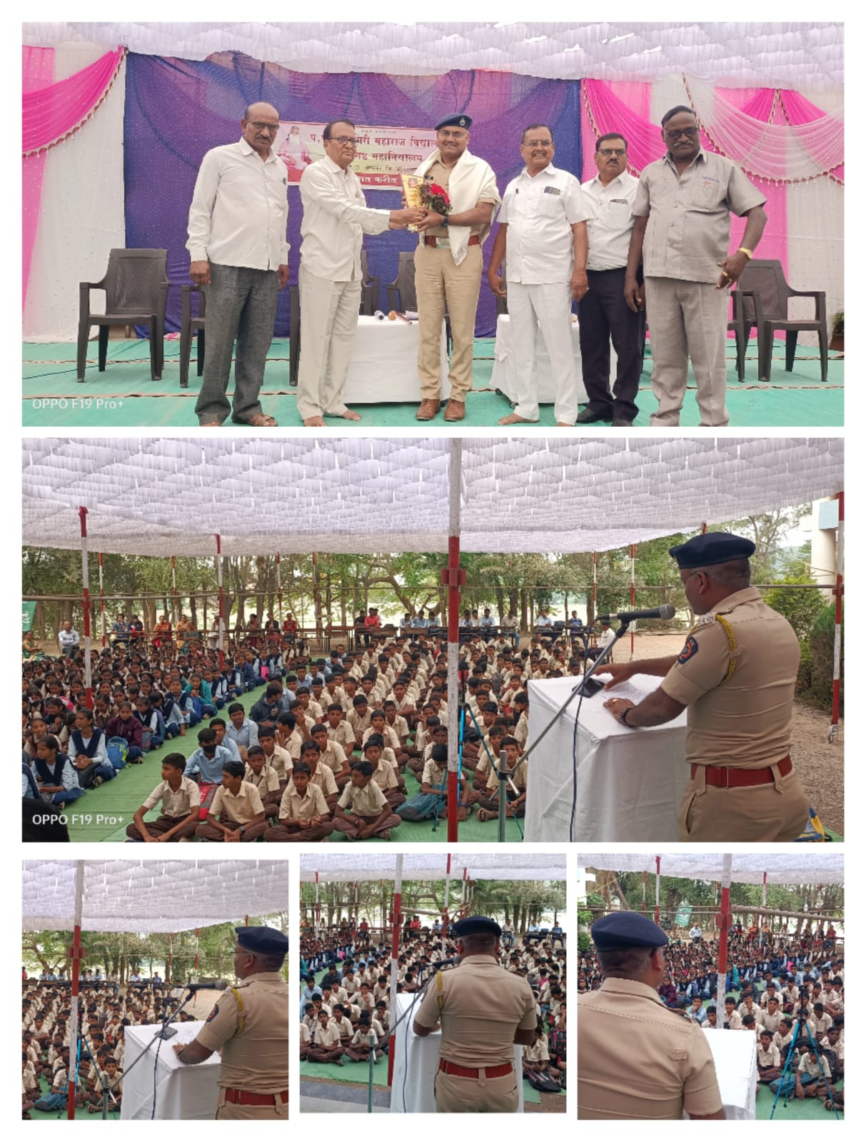यावेळी वाकचौरे पुढे म्हणाले की विद्यार्थ्यांनी शक्यतो मोबाईल वापरणे टाळा वापरलाच तर जे असेल ते बघा मुलींनी सोशल मीडियावर मैत्री करणे टाळा कारण सोशल मीडियावर फक्त फसवणूक होते हे वय शिक्षणाचे आहे फक्त शिक्षणच घ्या आमच्याकडे सध्या तरुण मुलींना फसवलेले हेच गुन्हे जास्त आहेत आपली फसवणूक होऊ नये यासाठी काळजी घ्यावी आज समाजात जे विदारक दृश्य आहे फक्त मुलींची आणि महिलांशी निगडित आहे शैक्षणिक व आध्यात्मिक संकुलात येणे यात आमच्या वर्दीचा स्वार्थ आहे कारण विद्यार्थी तसेच व्यक्तिमत्व विकास झाला तर भावी पिढी मानसिक दृष्ट्या सदृढ निर्माण होईल होऊन समाजातील गुन्हेगारी कमी होईल
