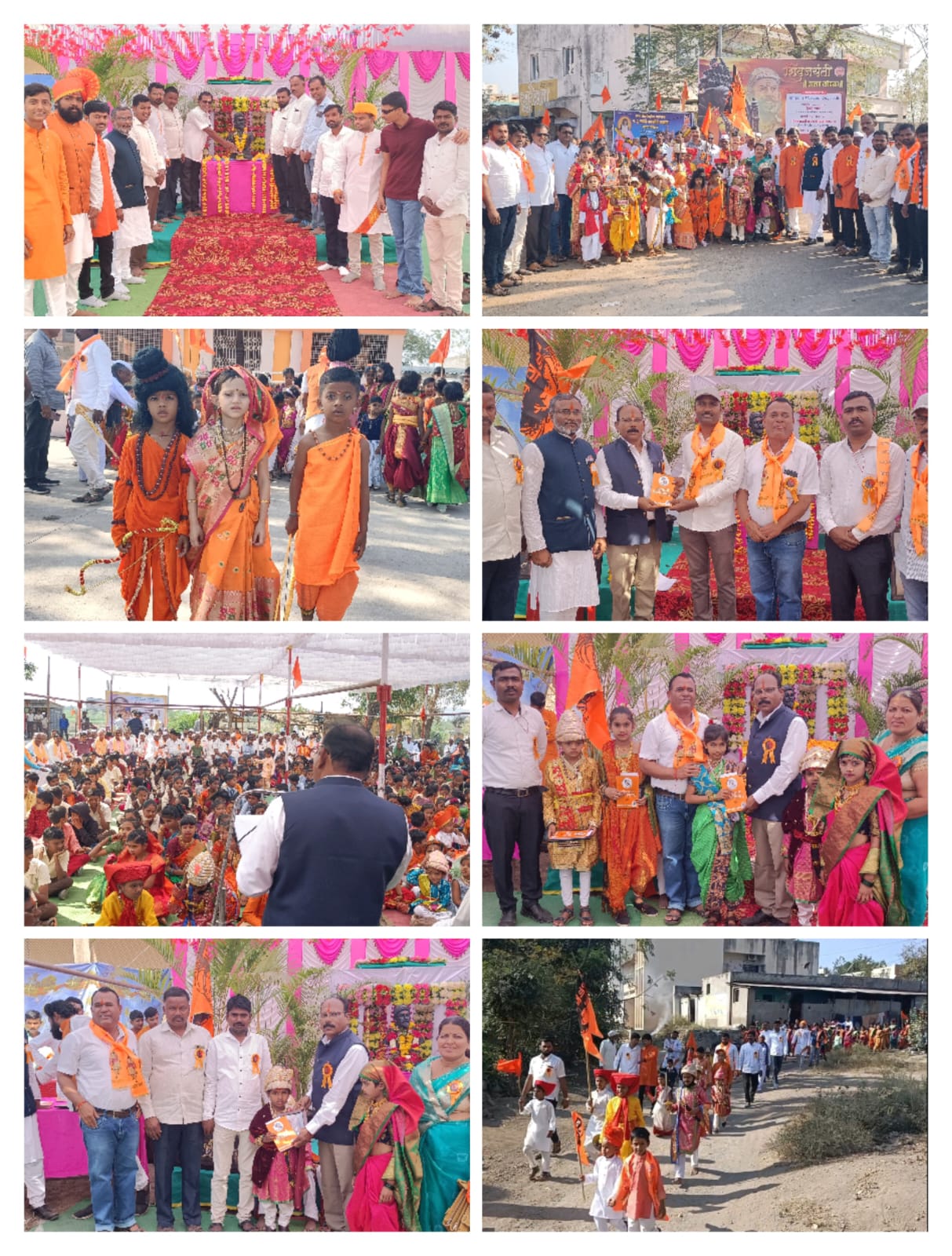 परमपूज्य गगनगिरी महाराज विद्यालय व जिल्हा परिषद प्राथमिक शाळेच्या विद्यार्थ्यांनी छत्रपती शिवाजी महाराज मा जिजाऊ संभाजी महाराज शाहू महाराज संत गाडगे महाराज संत तुकाराम महाराज सावित्रीबाई फुले राम लक्ष्मण सीता हिरकणी माता रमाई अहिल्याबाई होळकर महात्मा फुले शिवबाचे मावळे तानाजी मालुसरे बाजीप्रभू देशपांडे यांची वेशभूषा करत मिरवणुकीत रंगत आणली