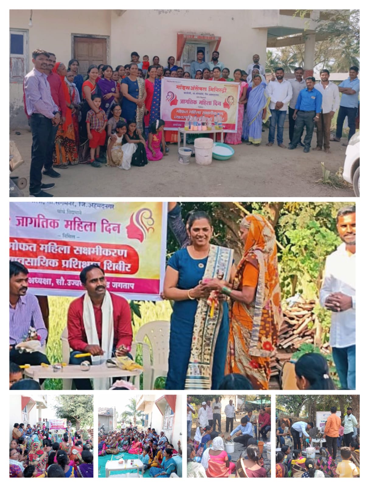 संगमनेर तालुक्यातील कनोली येथील गॉडस् असेंबल मिनिस्ट्री संस्थेच्या वतीने पिंपरणे येथे जागतिक महिला दिन साजरा करण्यात आला यावेळी महिला दिनानिमित्त महिला सक्षम व्हावी यासाठी महिलांना व्यावसायिक प्रशिक्षण कार्यक्रम संपन्न झाला महिलांना रोजच्या वापरातील फिनेल, वॉशिंग पावडर, भांडी धुण्याचे लिक्वीड घरगुती बनवण्याचे प्रशिक्षण देण्यात आले . यावेळी संस्थेच्या अध्यक्षा मा उज्ज्वला जगताप यांनी उपस्थित महिलांना मार्गदर्शन केले, एक शिक्षित महिला घरादाराला पुढे नेई यासाठी एक महिला कशा पद्धतीने घर सावरते, कुटुंबातील महिलांचे महत्व , मुलांवरील घरातील संस्कार मुलांना वाईट सवयी पासून वाचवू शकते, आज मुलाकडे लक्ष दिले तर एक चांगली पिढी आपल्या हातून घडेल अशा प्रतिपादन केले अनोख्या पद्धतीने जागतिक महिला दीन साजरा करण्यात आला.