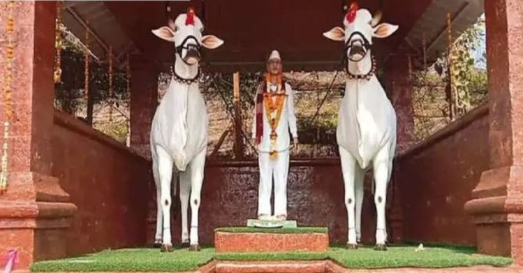 बापाच्या कष्टाची आठवण म्हणून बैलजोडीसह उभारला पुतळा .