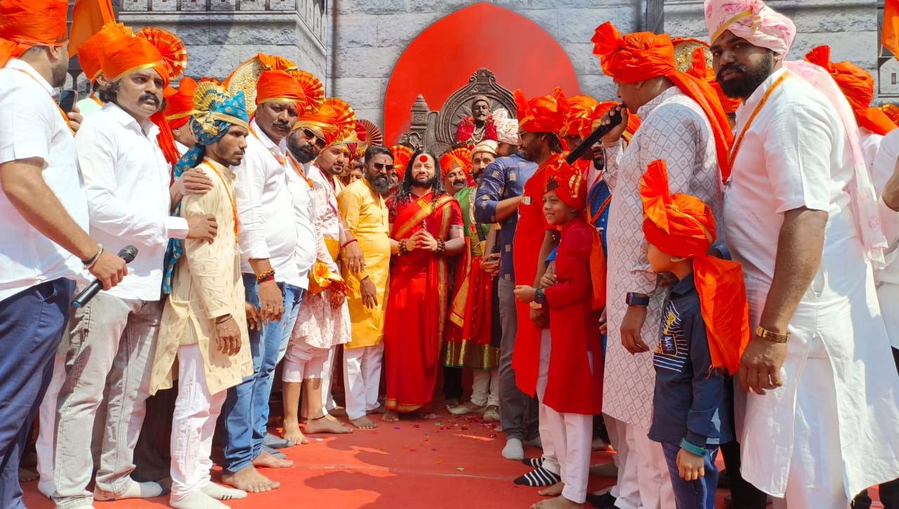 ढोल ताशा,बेंजो पथकाच्या गजरात छत्रपती शिवाजी महाराजांच्या वेशभूशा केलेले तसेच आऊसाहेब जिजाऊ मतांची वेशभूषा केलेले तसेच मोठ्या संख्येने शिवभक्त मिरवणुकीत सामील झाले.